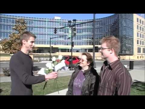 Somehow we became Facebook friends. I think I probably added him, since I remember meeting him and he made an impression on me that day, and he didn't remember meeting me at all. However, we never really spoke at all, Facebook or otherwise until November 2010. We both had just graduated from College that year. I had just returned from Africa and was working like a dog at a nursing home short-term until I could find a hospital job. Colin posted on his Facebook account that he was looking for volunteers to pass out flowers to strangers down town. That instantly sounded like something I would love to do, so I immediately volunteered. Here is a video of that event that Colin set up with help from a grant from the Ripples Project, which was created by his friend Paul.